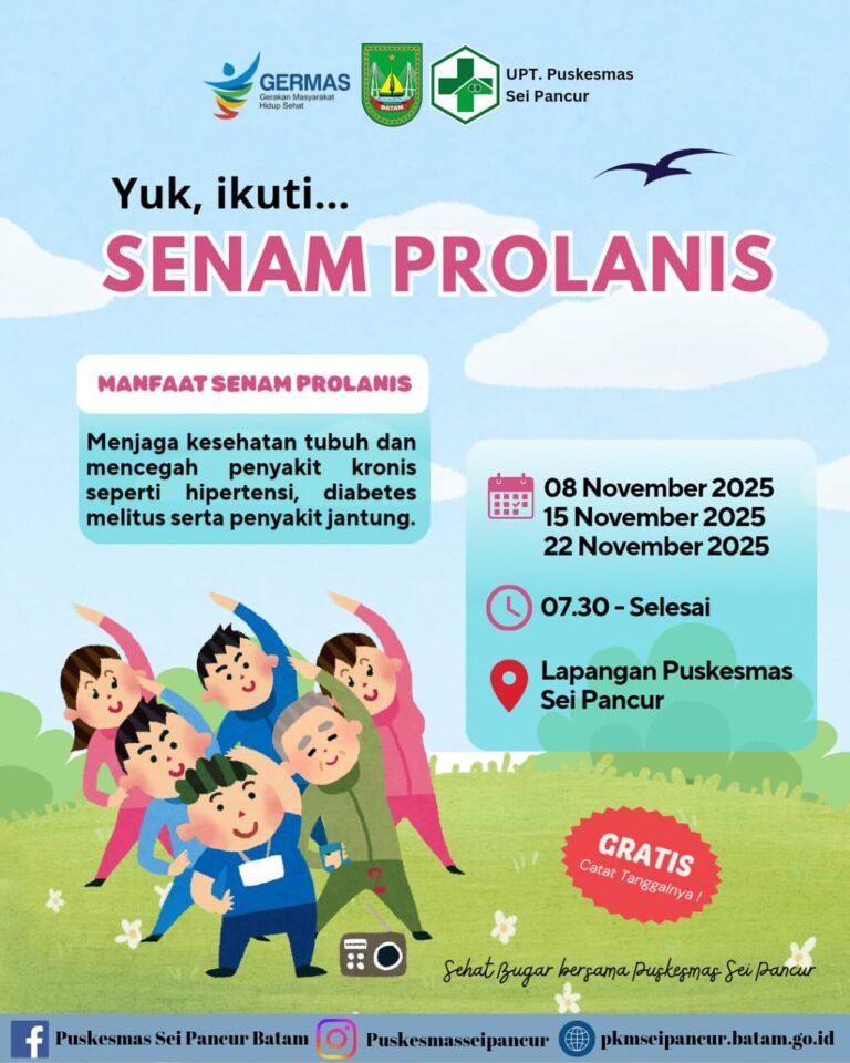 Hallo Sobat sehat Puskesmas Sei Pancur !! Ayo datang dan ramaikan. Senam prolanis!Bulan November di Lapangan Puskesmas Sei Pancur.. CATAT...