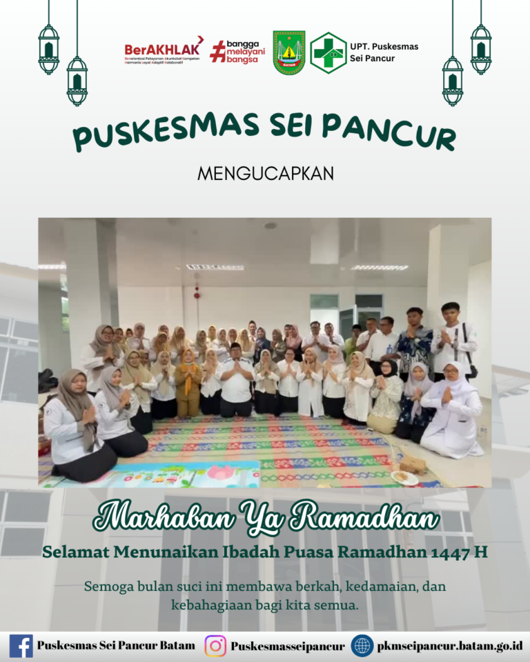 Kepala Puskesmas Sei Pancur dan segenap seluruh pegawai Puskesmas Sei Pancur mengucapkan Selamat Menunaikan Ibadah Puasa Ramadhan 1447 H Semoga...